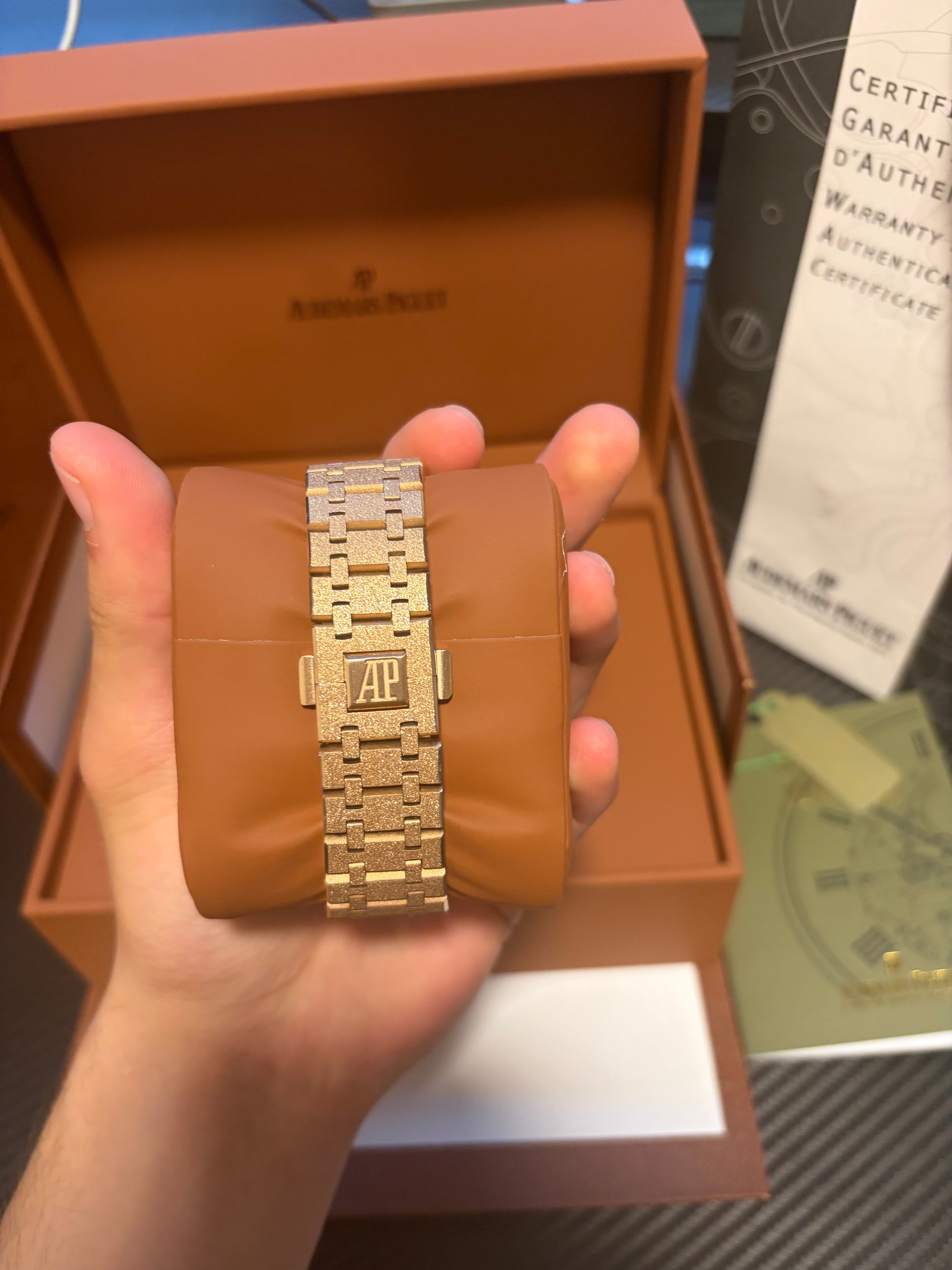 Audemars Piguet skeleton watch rose gold Frosted comes with automatic clockwork scratch resistant glass (saphire glass) and extra links to be made bigger and smaller.